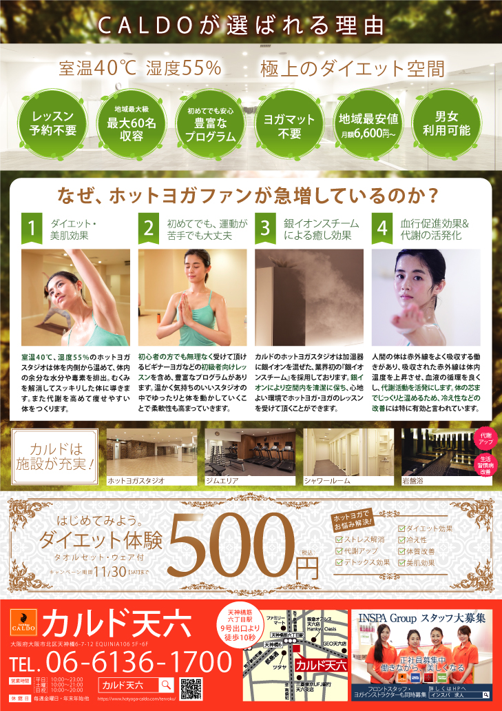 ・500円でCALDOのホットヨガ体験できるという目的で来店を促したい